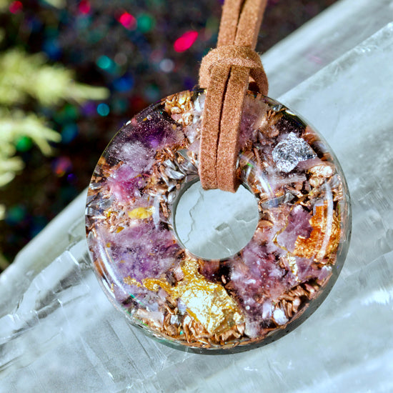 Amethyst Orgonite Donut Pendant with Quartz & Copper