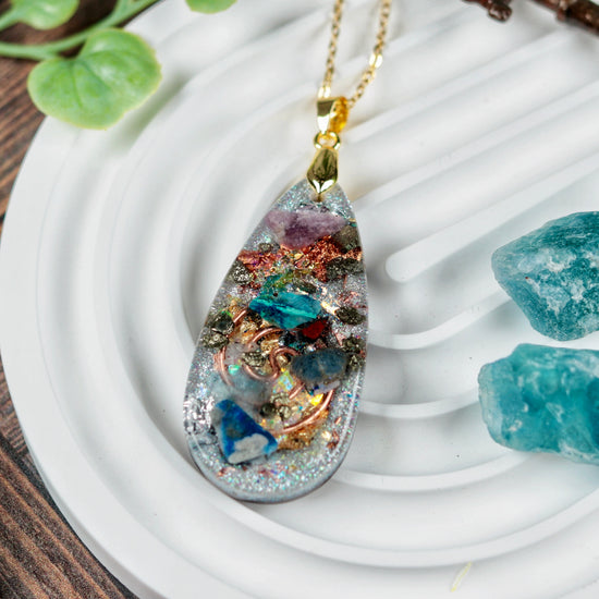 Orgonite Pendant Necklace with Shungite, Quartz & Blue Sapphire