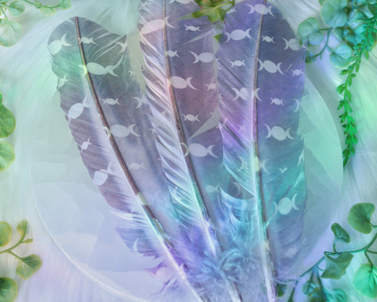 🌙 Triple Moon Feather – Features a mystical triple moon design, honoring intuition, divine feminine energy, and lunar cycles